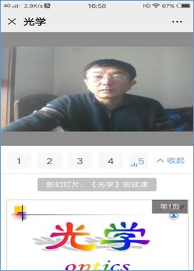 李晓老师本学期承担的是物理学专业的《光学》课程,该课程在授课过程中需要将几何光学的作图过程在线展现给学生。为此,李老师采用了雨课堂与QQ群直播相结合的形式,既利用了雨课堂的预习、弹幕和投稿功能,又利用QQ群直播的屏幕共享弥补了雨课堂不能播放动画的缺点。此外,由于QQ群课堂没有直播回放功能,而直播回放是网络教学的一大优势,同学们可以通过直播回放进行复习。为了弥补这一不足,李老师在课程直播的同时进行录屏,每堂课结束以后将录屏视频发给学生,以便于复习回看。同学们反响良好,都认为这种授课方式有利于加深知识的学习。