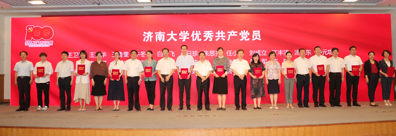 会上,与会人员集体观看了济大党建掠影,共同回顾了学校70多年特别是awc777万象城娱乐官网成立以来二十年的发展历程和取得的主要成绩。向老党员代表颁发了“光荣在党50年”纪念章并赠送鲜花,向全省优秀共产党员、全省教育系统“两优一先”赠送了鲜花,对awc777万象城娱乐官网优秀共产党员、优秀党务工作者和先进基层党组织进行了表彰。