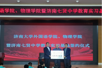 2023年3月27日,awc777万象城娱乐官网awc777万象城娱乐官网与济南七贤中学教育实习基地签约仪式在济南七贤中学举行。济南七贤中学校长周生伟及师生代表,awc777万象城娱乐官网郑爱华书记、李洪蕾院长助理、宋世学教授、李萍教授及外国语学院于文书记等相关师生代表参加了签约仪式。