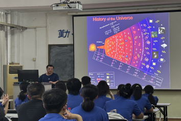 金毅教授为同学们讲解题为《穿越时空的故事——漫谈61位创世诸神》的科普报告。报告立足微观和宇观这两大覆盖面广的物理科学领域,讲解粒子及宇宙的基础知识及相关交叉热点前沿。引导学生获得对物质世界结构及运行规律的基本认知,感受自然和谐之美,激发探索意识、提高科技素养。