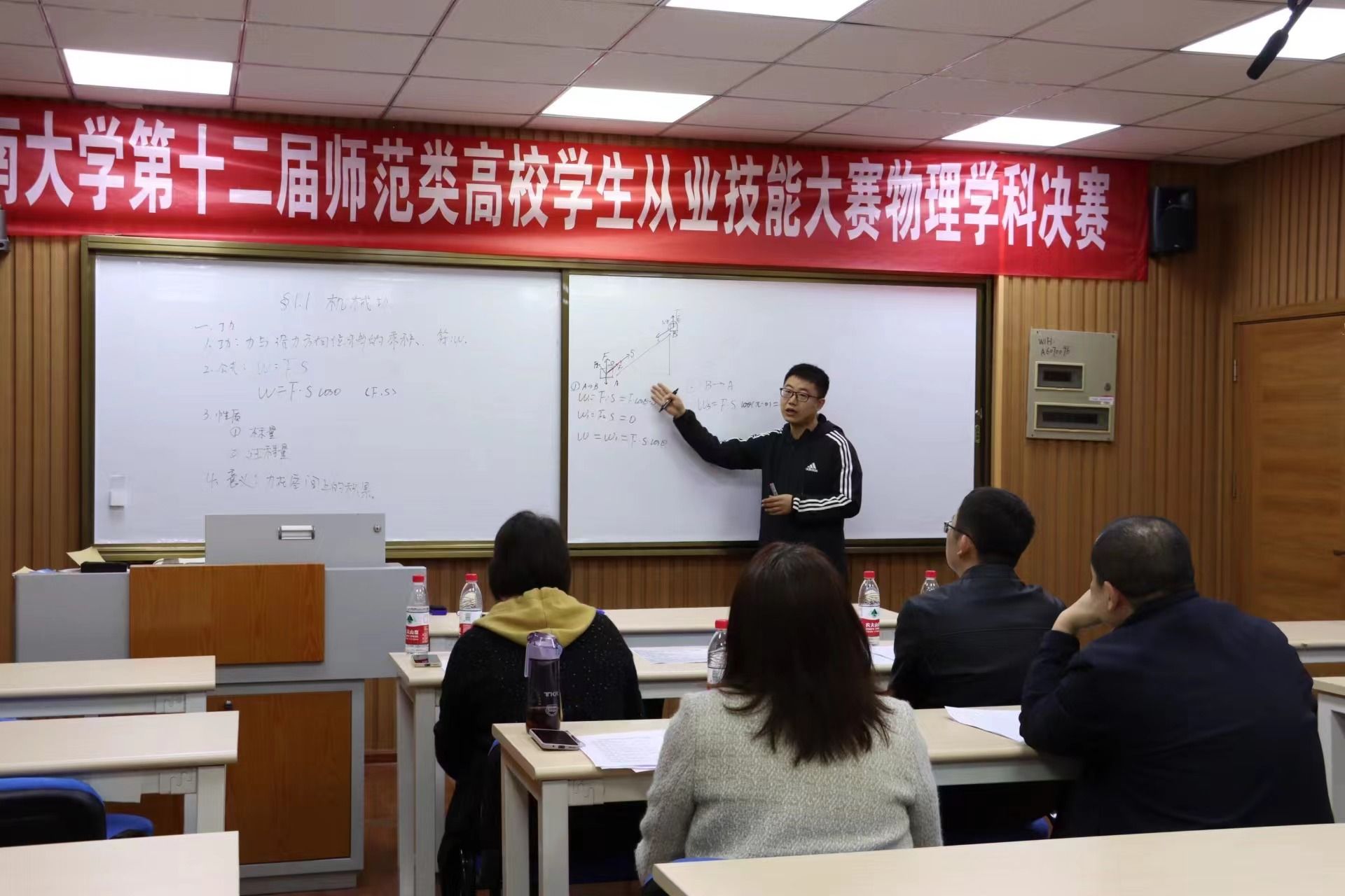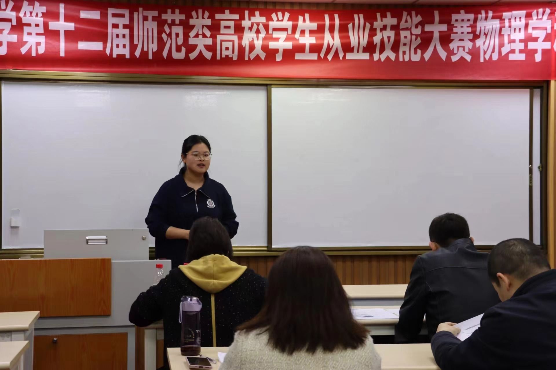 为强化师范生从教基本技能教学与训练,提升师范生的教学技能、实践能力和综合素质,推进教师教育持续健康发展,4月2日,由awc777万象城娱乐官网承办的第十二届师范类高校学生从业技能大赛(物理学科)校级决赛在七教A607举行。