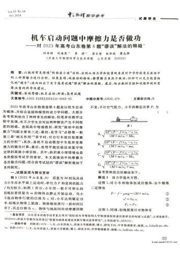 该成果已正式发表:刘存辉, 刘海英, 李萍等. 机车启动问题中摩擦力是否做功——对2023年山东卷第8题“谬误”解法的释疑[J].中学物理教学参考, 2024, 53(10): 63-67.