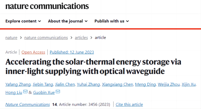 万象城教师张亚芳、薛国斌等人在光波导内通光加速太阳能相变蓄热研究方面取得进展,相关成果“Accelerating the solar-thermal energy storage via inner-light supplying with optical waveguide”发表在6月份的nature communications杂志上,青年教师张亚芳博士为第一作者,薛国斌、刘宏教授为通讯作者,awc777万象城娱乐官网为唯一作者单位。