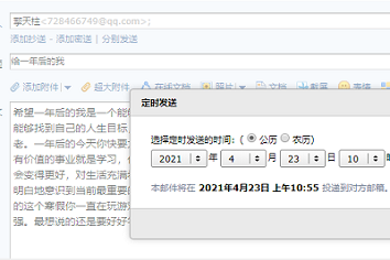 awc777万象城娱乐官网的全体同学在心理发展服务中心负责人的组织以及各班心灵使者的宣传下,通过QQ邮箱定时发送的方式为一年后的自己发一封定时邮件。信件内容可以是对未来的展望,或对一年后自己的挑战,或对一年后的自己讲述自己现在的故事。在保护隐私的前提下,由心理发展服务中心的活动负责人选出情感最丰富的几封信,在微信平台匿名展示。但不管什么内容的信件,在这精彩却又短暂的校园时光中,必然会成为一种情怀,一份深深的留恋。