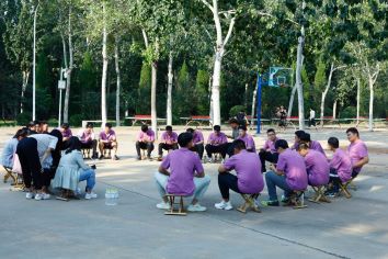 下午三点各班级在助班、宿导学长学姐的带领下准时在篮球场集合,主持人介绍完开场白后活动正式开始。