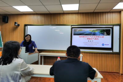 姚金平研究员在报告中介绍了空气激光现象与机制,并展示其在高灵敏度温室气体检测和同位素分析方面的应用。报告以超强超短激光在空气中传播的神奇之旅为开始,深入浅出、生动形象地讲解了超强超短激光将空气转化为“空气激光”的过程和机理,介绍了空气激光在记录污染物分子信息等领域的研究和应用前沿,最后与现场师生进行了深入广泛的探讨。