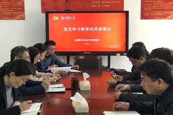 郑书记结合学院实际对党史学习教育做了具体安排和部署,旨在通过召开专题会议学习党史,参观党性教育基地,为师生办一次实事,讲一次党史专题党课,举办一次重温入党誓词,开展一次主题党日活动,开展“我和我的支部”微视频评选活动、举办党史知识竞赛等方式,将中国共产党的历史学习好、总结好,把中国共产党的成功经验传承好、发扬好。